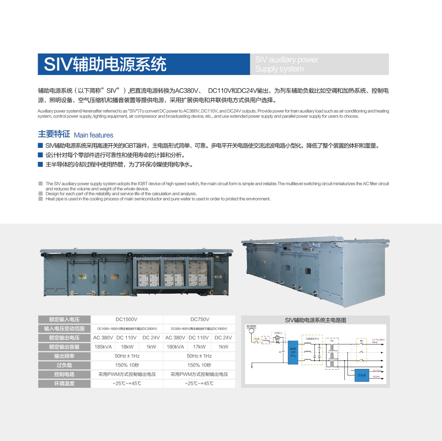 ? ? ? ?輔助電源容量180-255kVA,采用三電平逆變橋實現DC-AC變換,輸出AC380V/220V 、DC110V、DC24V電源,輔助電源輸出電源質量高、抗干擾能力強,效率高。